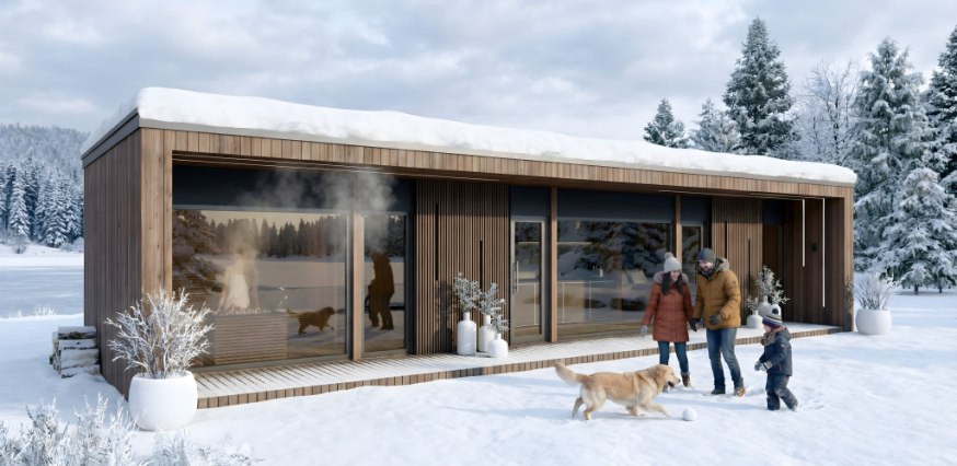 In den Referenzmaterialien zeigen wir die Joy Aurora bewusst in Frühlings-, Sommer-, Herbst- und Winterumgebung. Nicht als Kulisse, sondern im realen Gebrauch. Denn dieses Gebäude ist nicht saisonal.